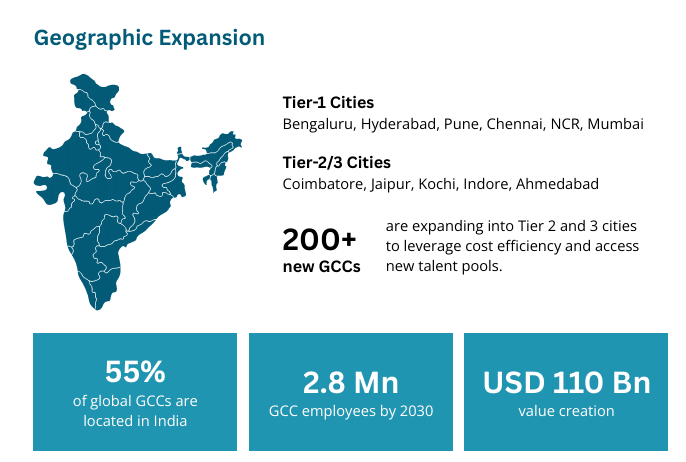 The report states that GCCs’ workforce comprises 20–22% entry-level employees, 75–77% mid-level specialists, and about 2.5% leadership roles. Salaries in GCCs are 25–30% higher than national averages. TeamLease projects that 14–22% of new hires by FY2030 will be digital-first freshers with skills in AI, cloud, data engineering, and cybersecurity.